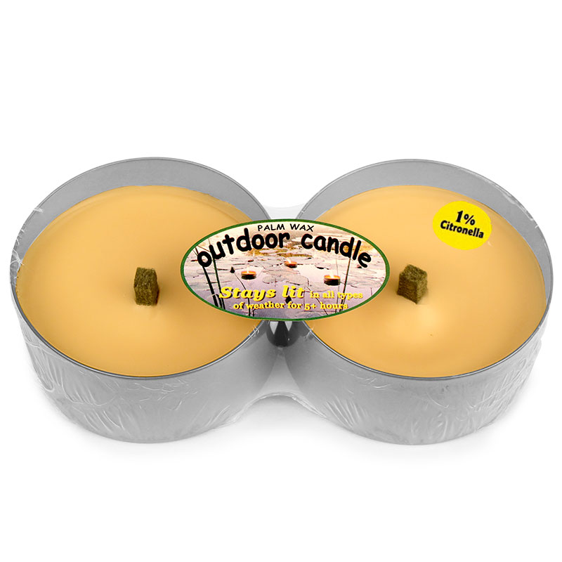 • Each package candle holds two Citronella Windflame 4″ candles.