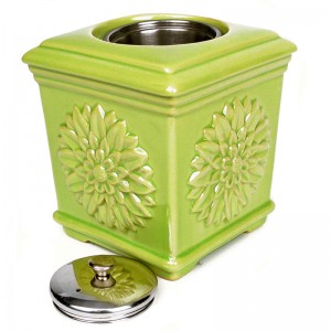 The EcoFlame Sunflower Patio Torch in Green Glaze Finish with 750 ml PUREFIRE bio lamp oil